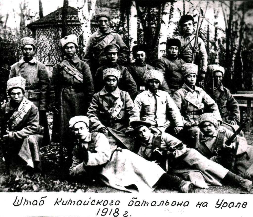 | Важную роль в истории росийско-китайских отношений стало создание 225 интернационального китайского полка «Красные Орлы» во в главе с первым большевиком Китая Жень Фученем. Взвод китайских рабочих был создан в Алапаевске в марте 1918 года. Летом они влились в состав «Красных Орлов». 2-3 октября 1918 года была создана китайская рота, которая через месяц стала полком. |